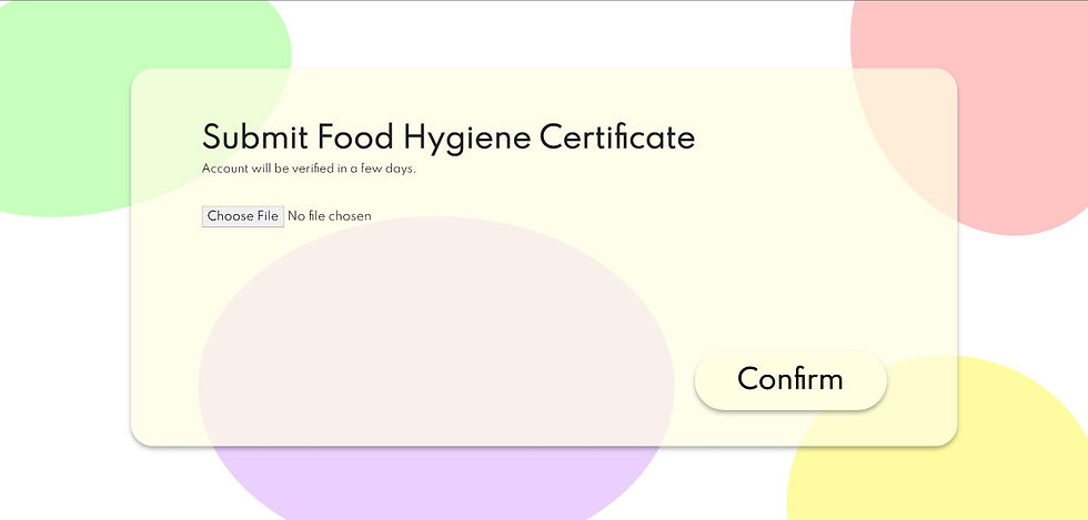 Food Hygiene Cert Upload — Upload softcopy of food hygiene cert so that we can verify that the user is a legitimate store-owner.