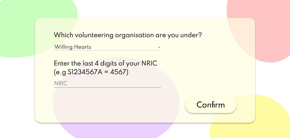 Volunteer Details — Enter volunteering information so that we can verify if the user is indeed a volunteer under the organisation that they claim to be from.