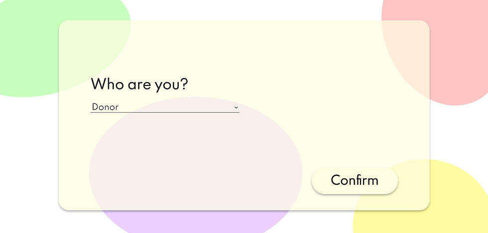 User Type — Indicate if you are signing up as a donor, store-owner or volunteer. If donor is selected and confirm button is clicked, new donor is registered. If store-owner or volunteer is selected, the respective follow up pages will be shown.